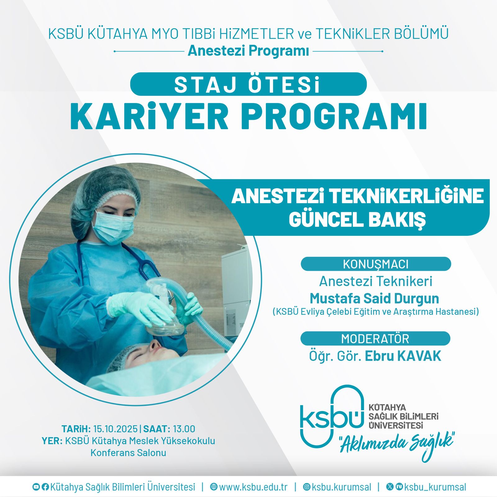Etkinlik Detayları Etkinlik Tarihleri 15 Ekim 2025, Çarşamba | Saat :13:00 - 15:00 Etkinlik Yeri KSBÜ Kütahya Meslek Yüksekokulu Konferans Salonu Etkinlik Türü Konferans Etkinlik Sahibi KÜTAHYA SAĞLIK BİLİMLERİ ÜNİVERSİTESİ